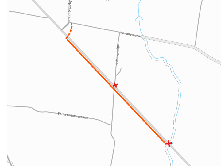 Under tiden väg 108 är avstängd kommer biltrafik till/från Knästorp att gå via Vesumsvägen.