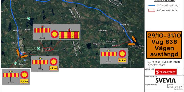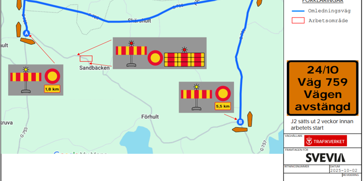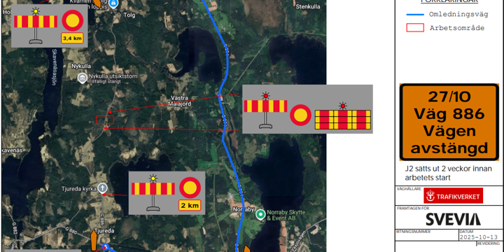 Följ omledningsvägvisning och var rädd om varandra i trafiken.