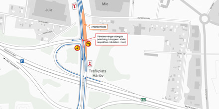 Vi bygger ett vänstersvängkörfält vid trafikplats Härlöv för att förbättra framkomligheten på E22 och väg 19. Arbetet startar vecka 42 och beräknas vara klart i slutet av november 2025, om allt flyter på.