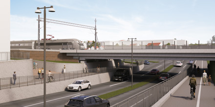 Just nu är Brunnsgatan i Nyköping avstängd mellan Södra Bangårdsgatan och Blommenhovsvägen. Biltrafiken leds om till alternativa vägar. Anledningen är att vi ska kunna transportera in en ny järnvägsbro över Brunnsgatan.