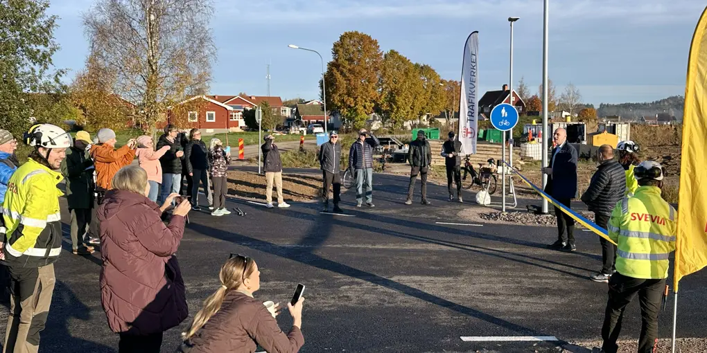 I ett höstsoligt väder klipptes efter några kortare anföranden av kommunstyrelsens ordförande, Fredrik Jarl, ordförande i barn- och utbildningsnämnden Jan Wiklund samt Trafikverkets projektledare för tunnelprojektet, Kristin Jämte ett symboliskt band.
