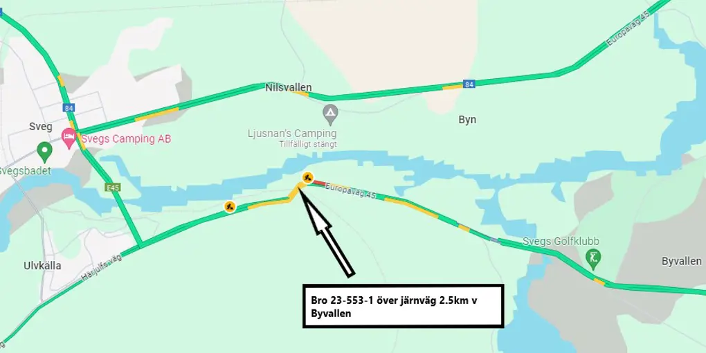 Räcket på bron strax söder om Sveg, på E45 2,5 km väster om Byvallen, är i dåligt skick och behöver delvis bytas ut. Arbetet startar 8 april och kommer att utföras nattetid.