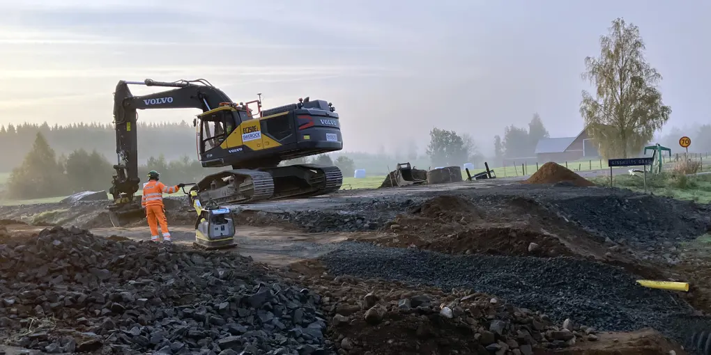 Vi utför markarbeten för att möjliggöra byggnation av bron över Allmänningsån. Mellan Tannarp-Aborrarondellen startar inom kort arbete i form av schakt och byggnation av vägen.