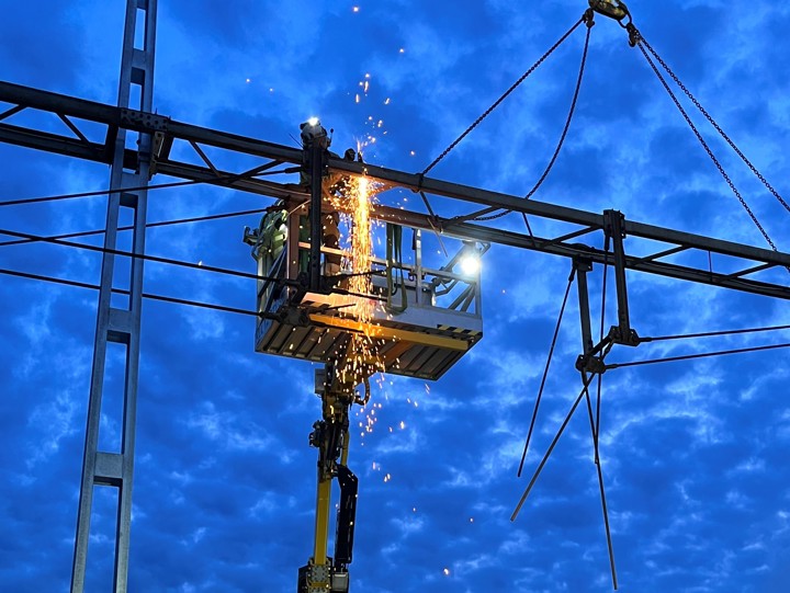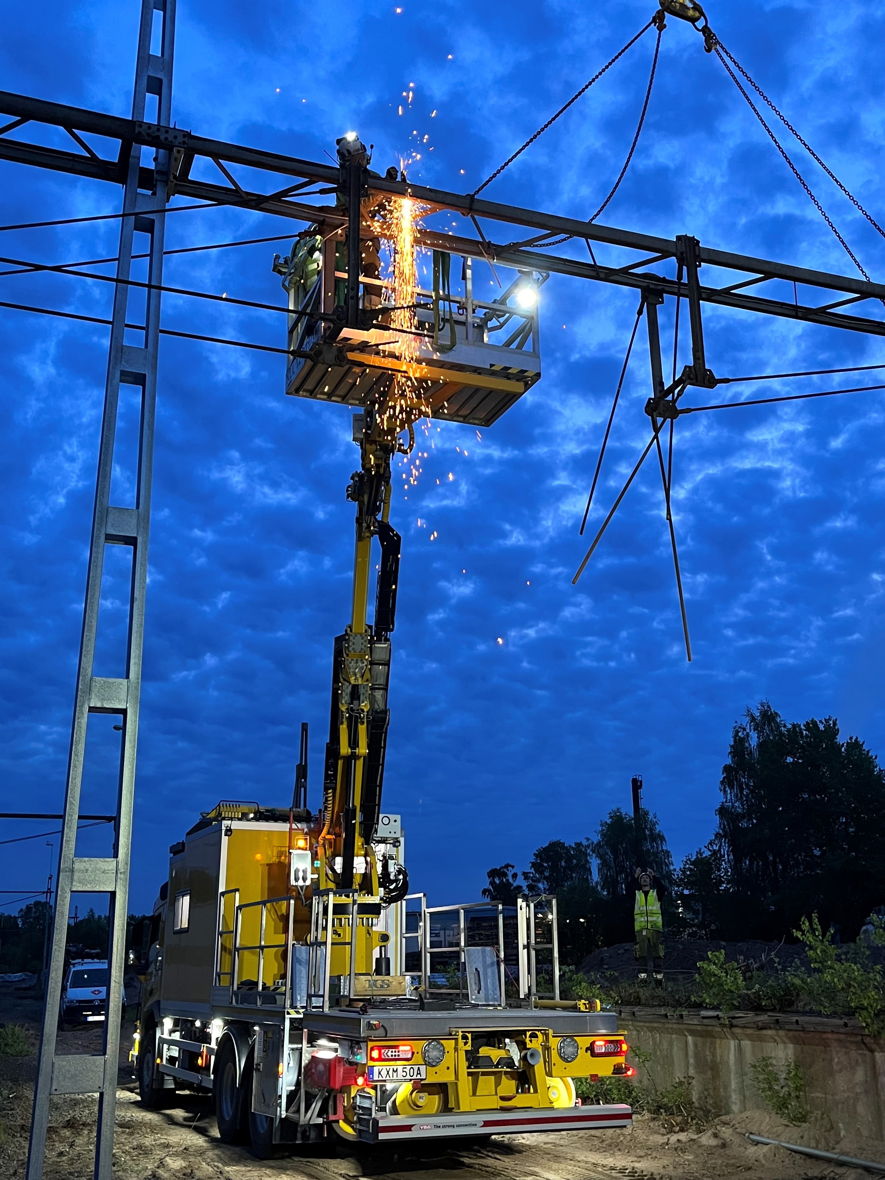Förra året inleddes arbetet med genom att placera ut samtliga fundament på sträckan. Nu påbörjar vi monteringen av kontaktledningsstolpar och kontaktledning. Arbetet på Alvesta bangård startar under vecka 3 och fortsätter därefter i riktning mot Älmhult från vecka 9. Sammanlagt ska vi resa över 1 000 kontaktledningsstolpar, montera 80 kontaktledningsbryggor och hänga upp 94 kilometer kontaktledning.