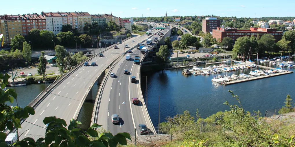 Vi genomför underhållsarbeten på alla våra broar kontinuerligt. På så sätt ser vi till att minska trafikstörningar i framtiden och öka trafiksäkerheten för dig. Den 1 april 2024 påbörjar vi ett stort arbete med att reparera bropelarna och brostöden på Essingebron, bron mellan Stora och Lilla Essingen.