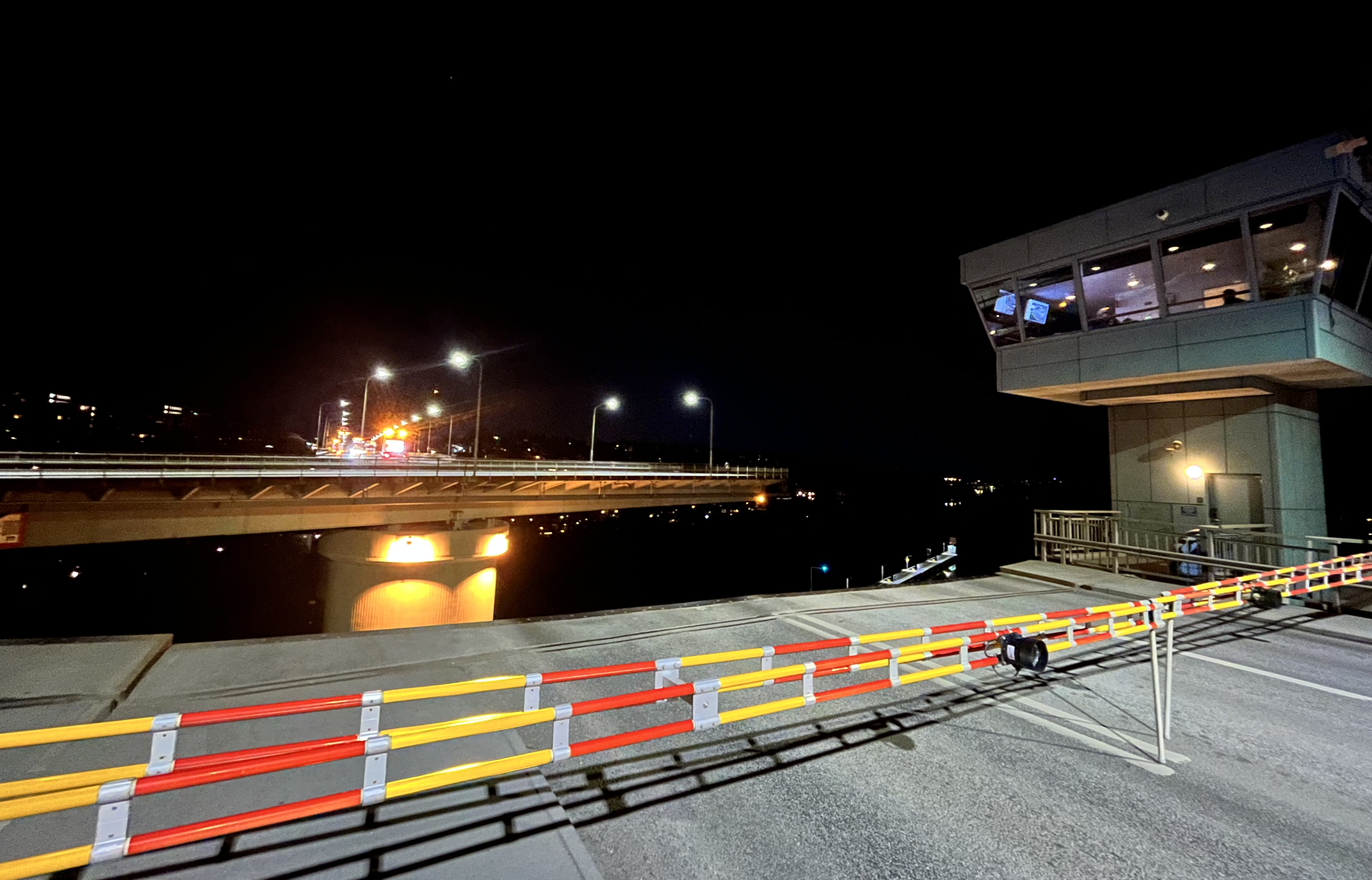 I våras gjorde vi en noggrann genomgång av Nockebybron. Filmen visar en broöppning från vårens översyn, där en av signalerna vid en bom behövde lagas och testas. Hastigheten på själva broöppningen är lite uppsnabbad!