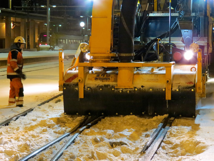 Snö och kyla kan ställa till det på järnvägen eftersom det påverkar både spår och växlar. På Stockholms järnvägar går det väldigt många tåg och Trafikverket har cirka 3–4 timmar per natt för att utföra olika typer av underhåll och röja bort snö eller is.