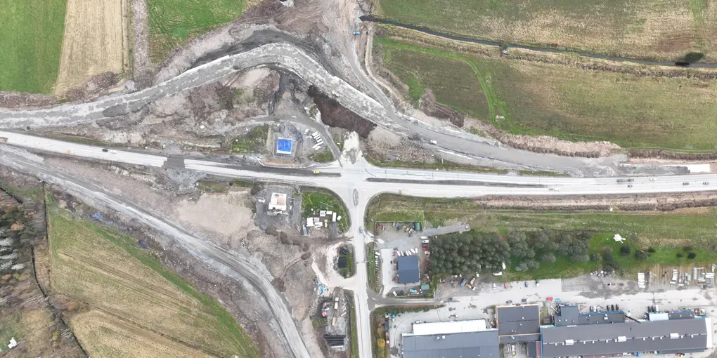 Den tidigare passagen över E4, via väg 667, är stängd eftersom en ny bro byggs i den kommande trafikplatsen. Där är det inte tillåtet att passera.