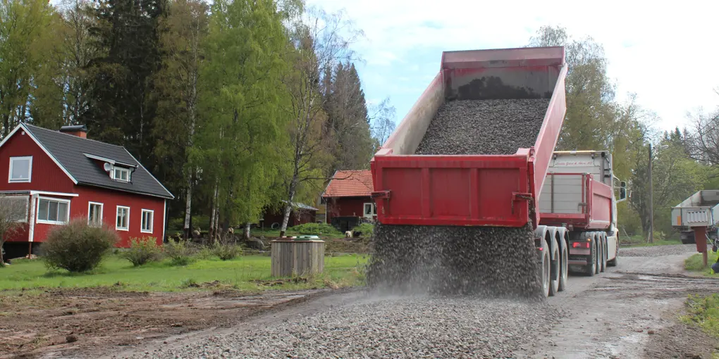 – Förstärkningsarbetet innebär även att vi behöver lägga ganska stora och ojämna stenar vilket gör det extra besvärligt att ta sig fram någon vecka under pågående arbete. Om du kan så välj en annan väg. Behöver du passera så kör lugnt och anpassa hastigheten till väglaget, uppmanar Kristofer.