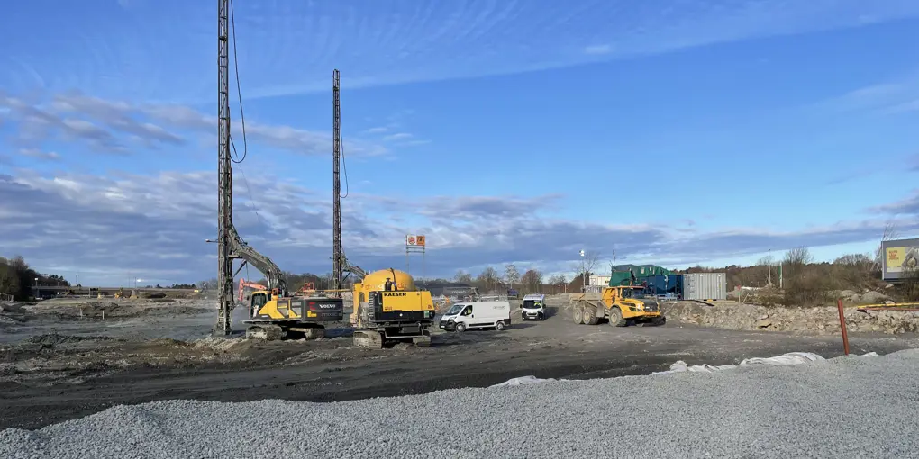 - Vi arbetar med grundläggning genom installation av kalkcementpelare samt lättfyllnad i form av skumglas.