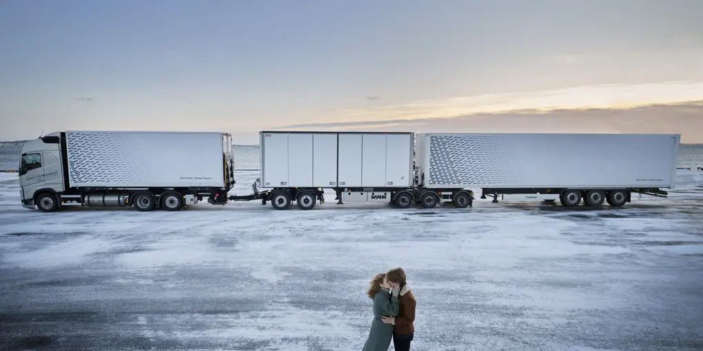 En långtradare kan vara ett fordonståg på 34,5 meter men det kan också vara en extra lååång och härlig kyss.