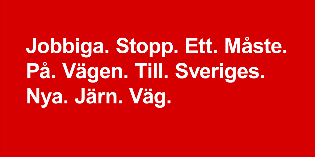 Med start en vecka före påsk börjar information om årets påsk-arbeten visas i olika järnvägsmiljöer och på sociala medier. I dessa annonser har vi sprängt in ett stort antal punkter i budskapet för att illustrera att det i spåren av våra jobb just kommer uppstå en del stopp i spåren. Alltså stopp för att vi ska kunna jobba, men också stopp som vi inser kan innebära ett mer eller mindre jobbigt stopp för dig som önskat kunna ta tåget hela vägen till din påsk-destination. För information om eventuell ersättningstrafik hänvisar vi till det tågbolag du planerat att resa med