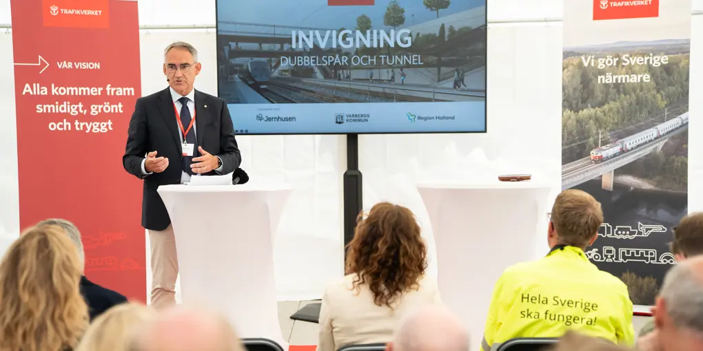 Vid en pressträff för särskilt inbjudna gäster som projekt Varbergstunneln arrangerade på ett soligt stationsområde i Varbergs centrum deltog gd Roberto Maiorana och infrastruktur- och bostadsminister Andreas Carlson, tillsammans med projektets medfinansiärer; Varbergs kommun, Region Halland och Jernhusen. Samtliga talare lyfte upp vikten av utbyggnaden av Västkustbanan och den förbättrade kapaciteten som är av stor vikt i en expanderande region, och den förbättrade säkerheten då nio plankorsningar nu byggts bort genom Varberg.