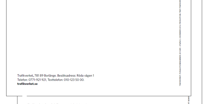 Exempel på baksida på trycksaker. Tryckort placeras stående i högerkant, läs mer: