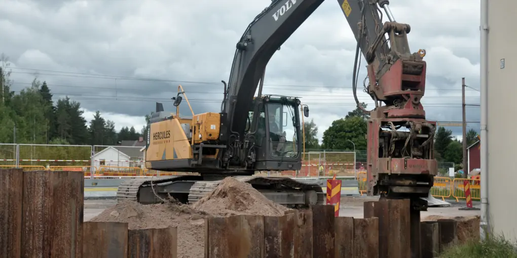 - Jag måste medge att det nu känns oerhört bra att vi är igång med arbetet efter att det stundtals varit ganska mycket som påverkat projektets framdrift, säger Trafikverkets projektledare, Riitta Pettersson när hon står och studerar grävmaskinens arbetet med att slå ned stålsponten.