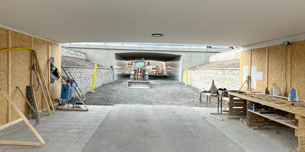 - Det börjar att se riktigt bra ut. Jag var på plats för några dagar sedan och kunde med egna ögon se att all kakling av tunnelväggarna är klar och plattsättningen ska snart genomföras. Samtidigt kommer vi att starta bygget av trappen som leder ned till tunneln, berättar Riitta Pettersson.