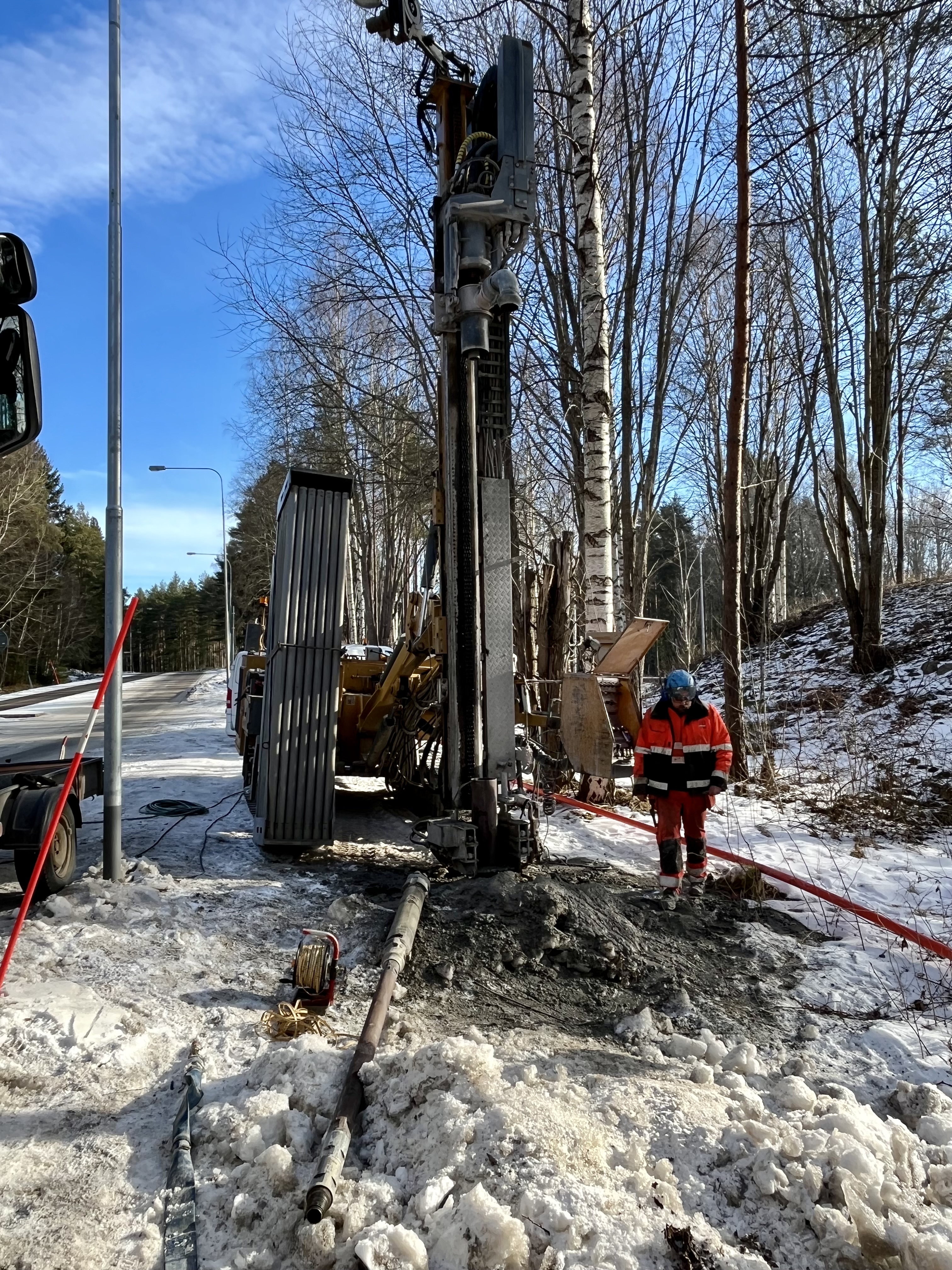 För att bygga ett dubbelspår för Ostkustbanan i nytt läge behöver den befintliga Hamnleden sänkas åtta meter. Järnvägen är tänkt att ledas på bro över Hamnleden och trafikplats 200 Gävle Norra, ut från ny planerad tågstation Gävle Västra. Med den vetskapen behöver vi få kunskap om grundvattenförhållandena i området och hur dessa kan påverkas om vägområdet sänks. Vi har därför provpumpat på Hamnledens norra sida under 2025 (vid Pingeltorp) där vi simulerat en sänkning av grundvattennivåerna och hur det skulle kunna påverka byggbarheten och omgivningen.