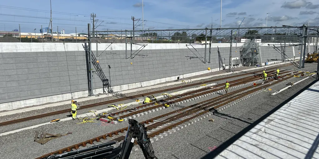 Vårt arbete norr om dagens tågstation i Varberg fortsätter intensivt. Nu är vi även igång med att lägga spår precis som vi innan sommaren gjort i Breared i vårt södra arbetsområde.