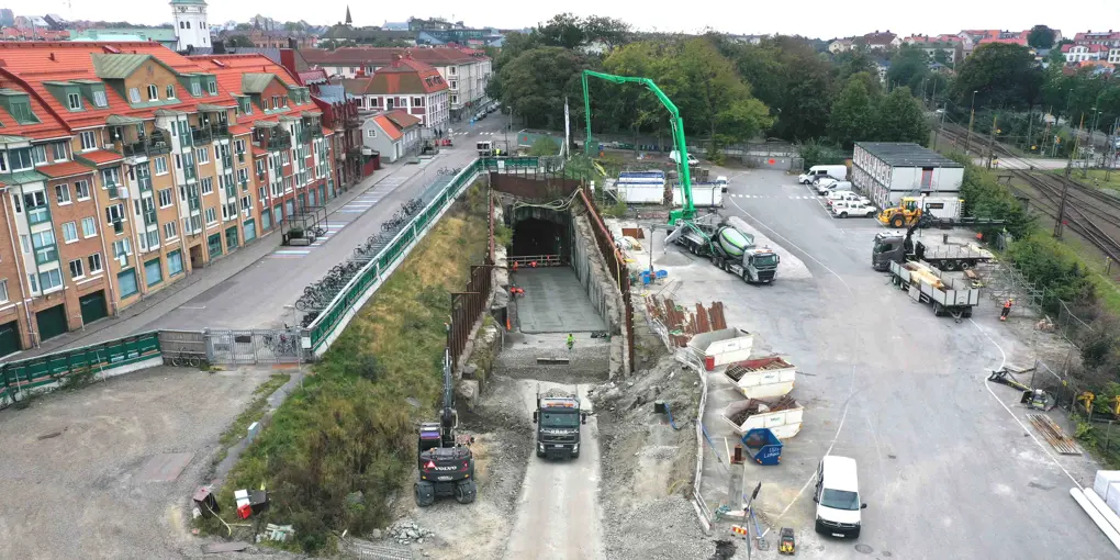 När vi är klara med betongtunneln om några månader fortsätter vi med andra arbeten för att göra klart området runt den. Arbetena kommer att vara helt klara under våren 2026, efter det att vi öppnat för tågtrafik på nytt dubbelspår och i tunneln.
