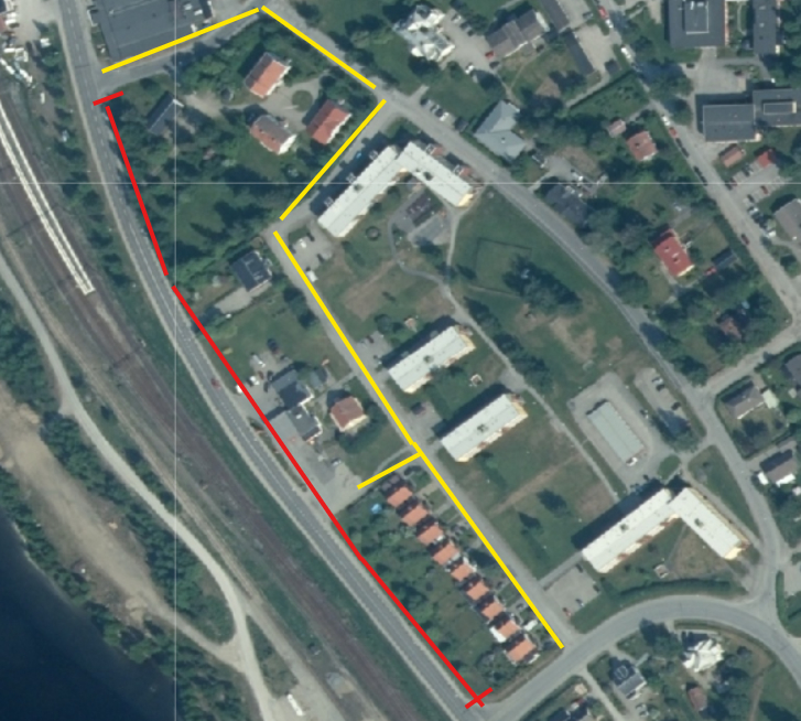 Gång och cykelvägen kommer att vara avstängd och ej underhållas under denna vinter. Gående hänvisas via Torpgatan - Östra kungsvägen - Vinkelgatan -Kyrkvägen eller åt andra hållet om du kommer från Sjöändan (gul markering på bilden).
