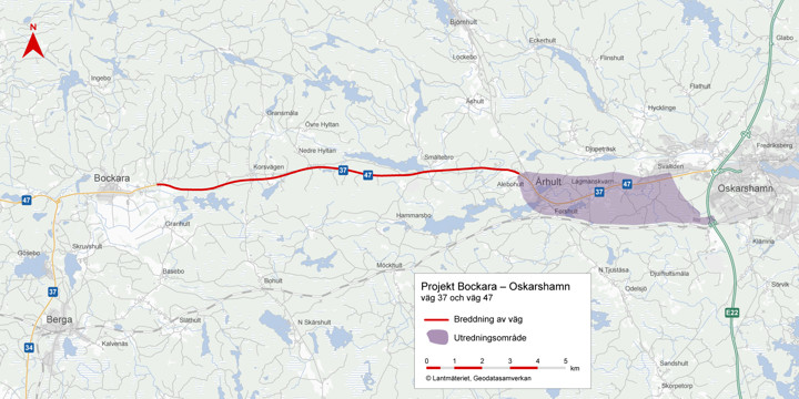 - Sträckan Århult -Trafikplats Oskarshamn södra kommer att bestå av antingen en helt ny dragning av väg 37/47 eller en kombination av breddning av befintlig väg 37/47 och ny dragning.