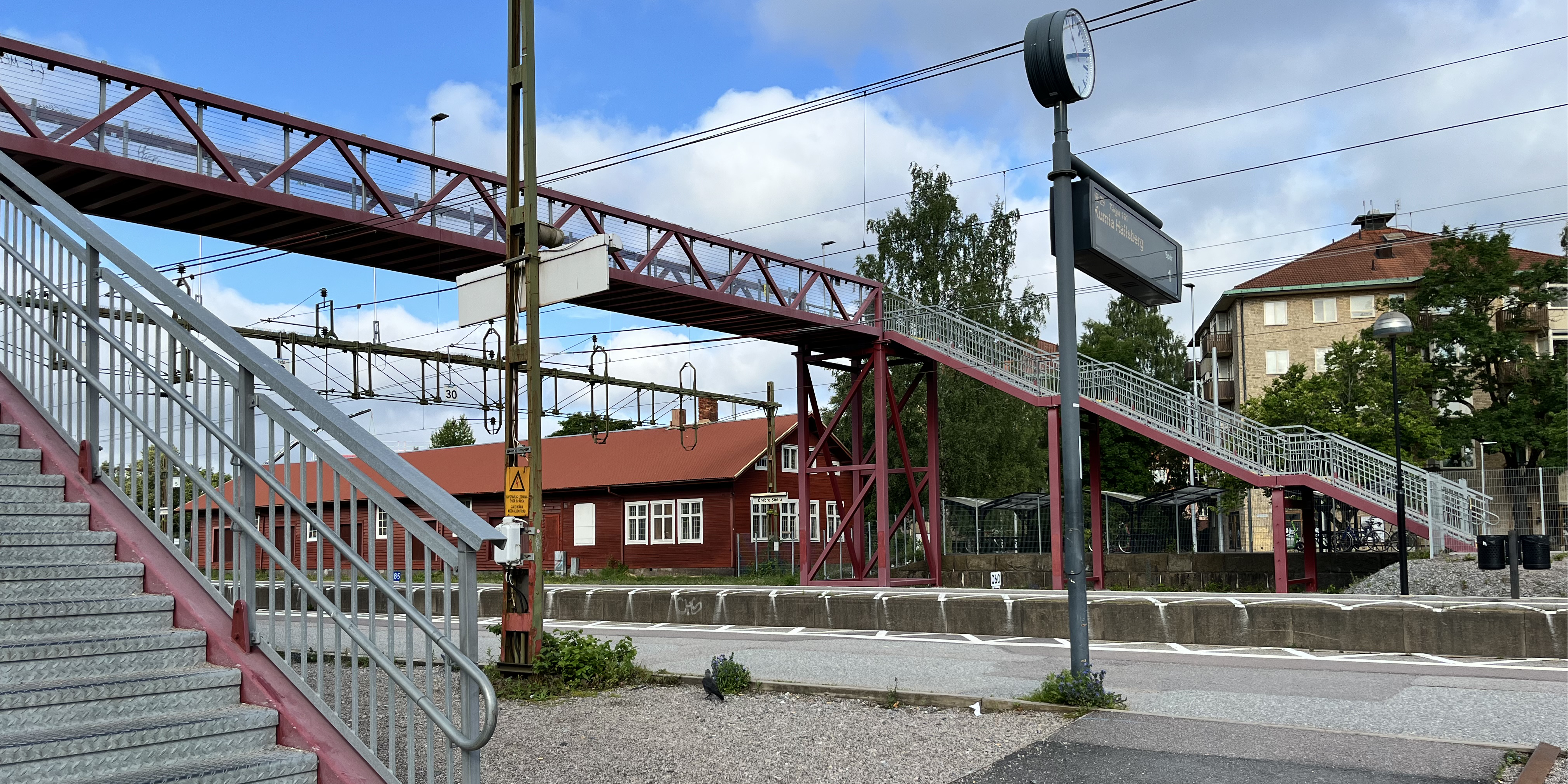 Mellan den 24 november och 5 december stänger vi av gångbron vid Örebro Södra. Då kommer vi att arbeta med att sänka marknivån vid brotrappans nedre del för att anpassa höjden till den nya plattformen på västra sidan av järnvägen. Vi kommer också att förlänga den västra trappan med ett par trappsteg.