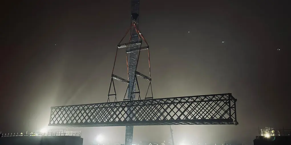 UPPDATERAD: Natten mot 13 mars lyftes den tillfälliga bron i Hjärup bort. Nu väntar en lång tågresa för bron. Nästa uppdrag är ett brobygge över Råneälv vid Nattavaara by.
