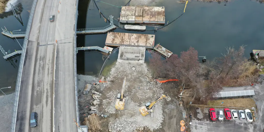 Merparten av den gamla Tappströmsbron är nu riven. Men för att få bort de sista delarna behöver vi även spränga.