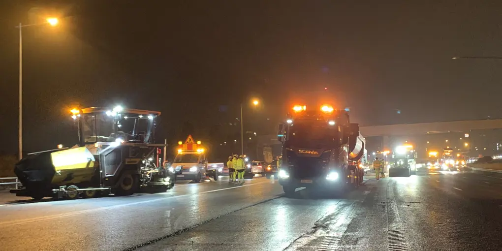 I helgen görs en trafikomläggning av E4/E20 norrgående mellan Vårby backe och Trafikplats Lindvreten norra.