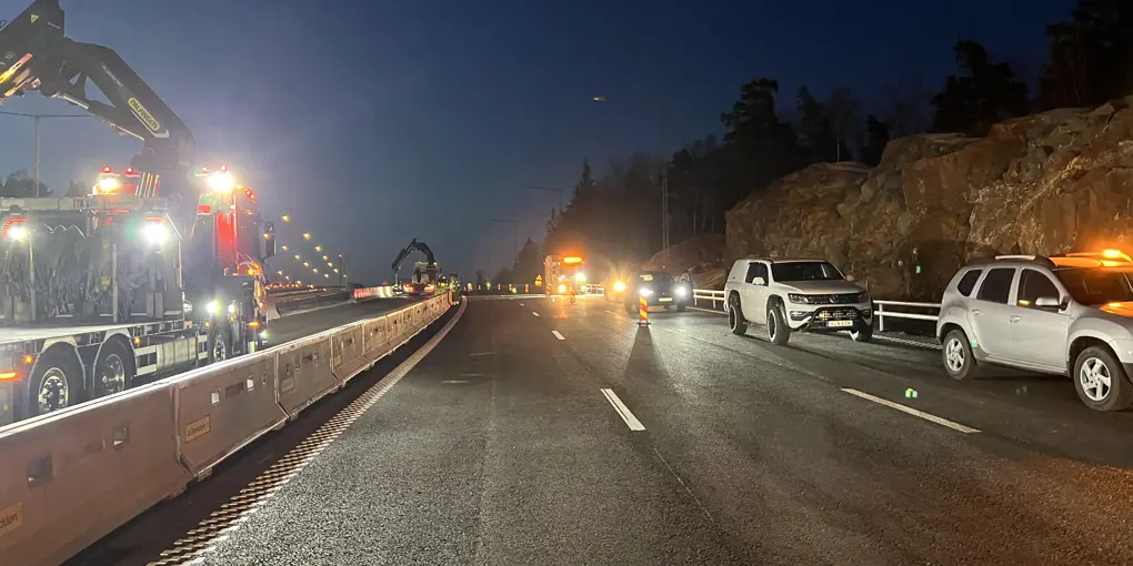 I helgen gör vi en trafikomläggning av E4/E20 i norrgående riktning vid trafikplats Lindvreten södra.