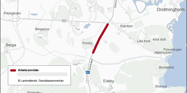 Under vecka 36 gör vi asfalteringsarbeten och linjemålning på vägsträckan från Finnbo/Edeby fram till Kantonkorsningen. Sedan är den drygt 500 meter långa sträckan färdig.