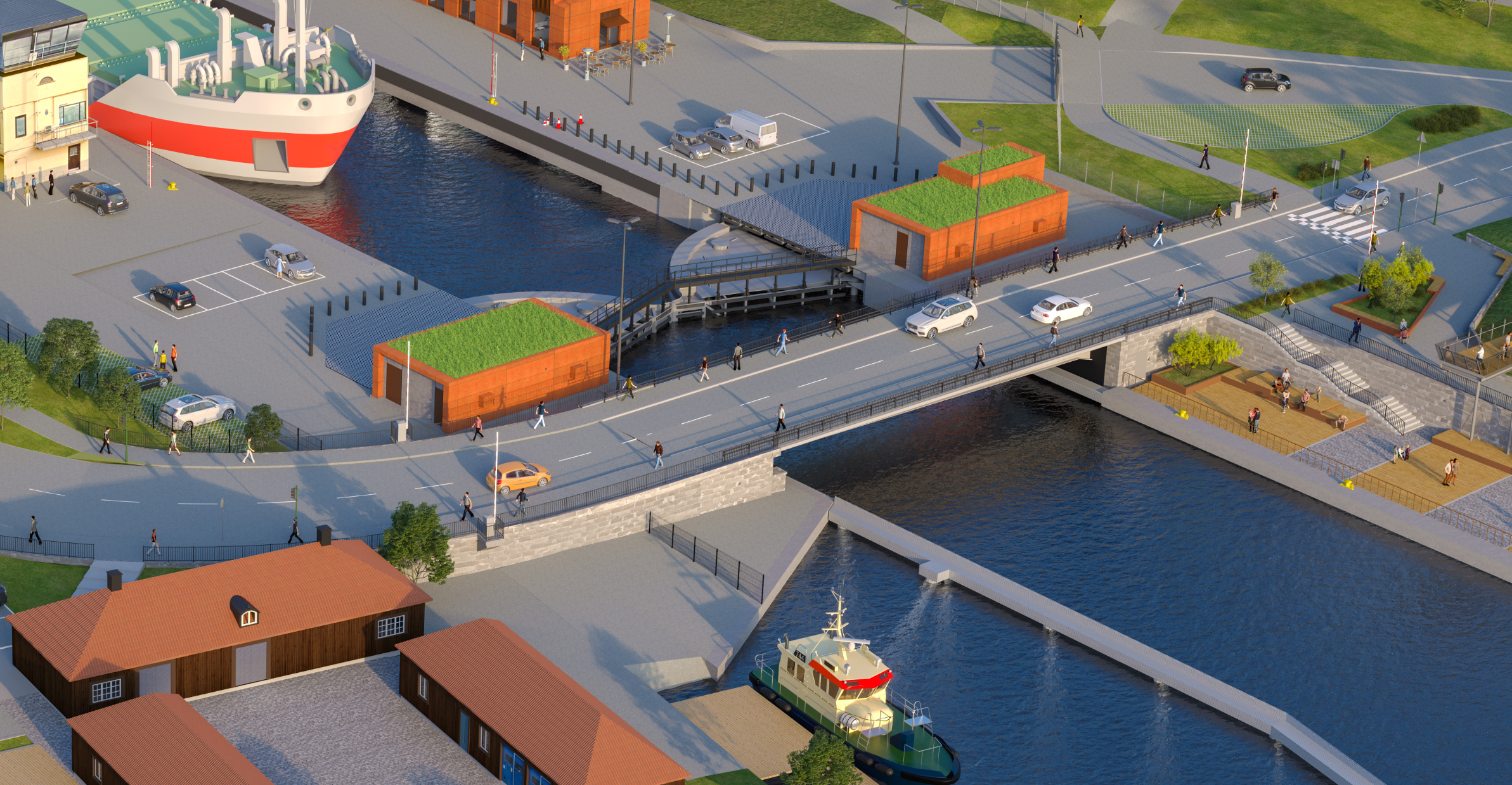 När bron är monterad fortsätter arbetet med att färdigställa övriga delar som ska få broklaffen att lyftas och sänkas. Bland annat ska vi bygga ett maskinrum och se till att hydraulik och teknik fungerar som den ska.