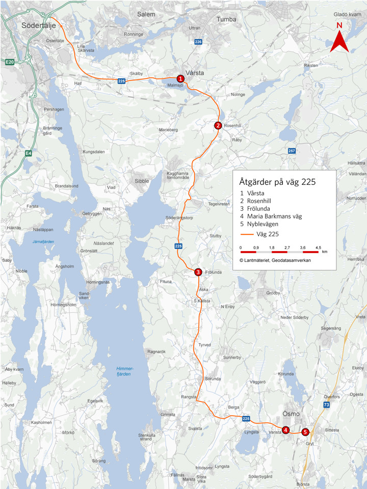 Några av de åtgärder som ska göras är mittrefuger för att försvåra omkörningar och säkrare vägar för människor som behöver korsa väg 225 och nyttjar kollektivtrafiken.