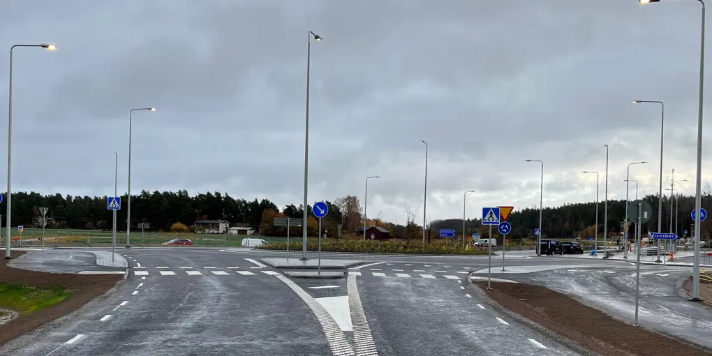 Vi fortsätter att bygga klart återstående delar runt cirkulationsplatsen och att återställa i området runtomkring. Vi räknar med att cirkulationsplatsen i sin helhet kan tas i bruk under vintern 2024.