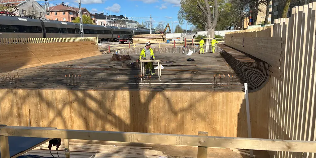 Kommande veckor fortsätter vi att bygga gjutformarna för bron vid S:t Persgatan. Den kommer sedan att gjutas i två omgångar, den 17 juni och den 18 juli.