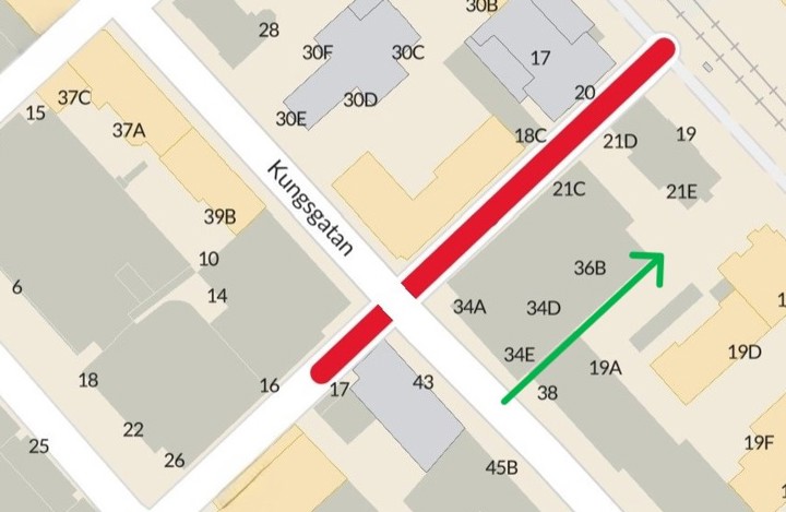Besökare till Frälsningsarmén hänvisas till tillfällig infart via Klostergatan.