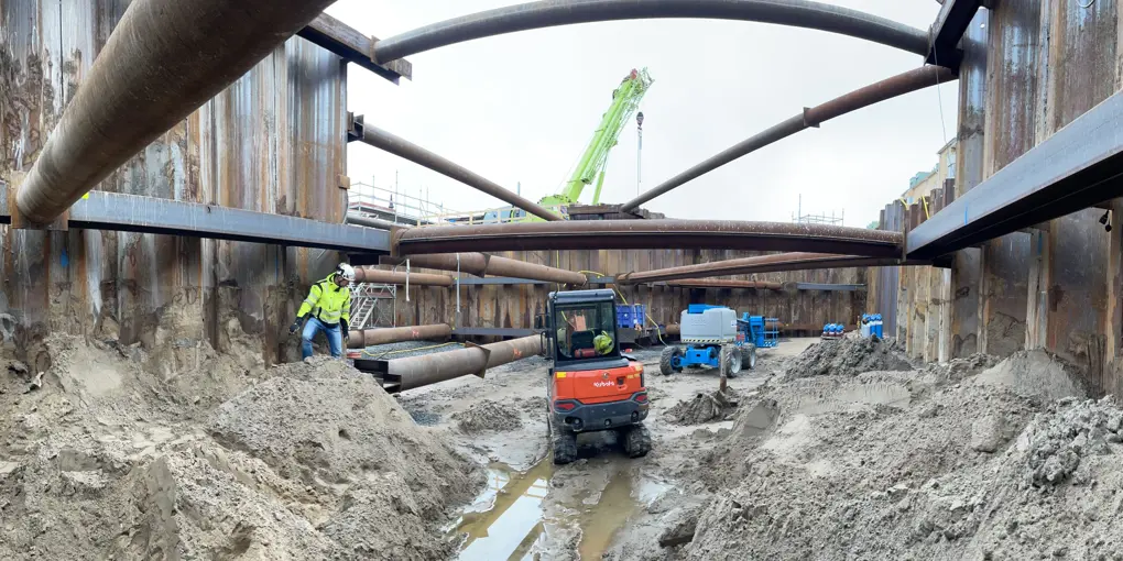På fredag den 24 november börjar vi förstärka den spontade väggen där vi ska bygga den södra entrén till Vikenpassagen. Det innebär att vi slår en extra spontvägg bakom den befintliga väggen av stålspont. Just spontningen kan orsaka en del buller och du som bor nära arbetsplatsen kan uppleva det störande. Vår entreprenör Infrakraft har monterat bullermätare på närliggande fastigheter och mäter kontinuerligt ljudnivåerna. Vi arbetar för att hålla oss inom de riktvärden som Naturvårdsverket tagit fram för byggbuller (NFS 2004:15). Om du upplever att bullret från vår arbetsplats är mycket störande och orsakar olägenhet är du välkommen att kontakta oss på Trafikverket.