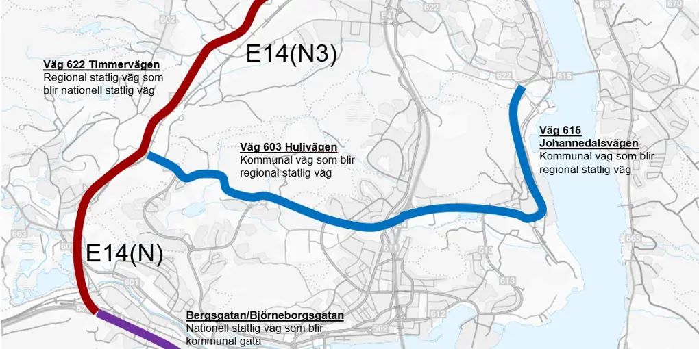 Trafikverket, Sundsvalls kommun och region Västernorrland avser att göra ett väghållarbyte på tre vägar. Väghållarbytet innebär även att alternativ N+N3 ska ligga till grund för val av lokalisering för E14s nya läge.