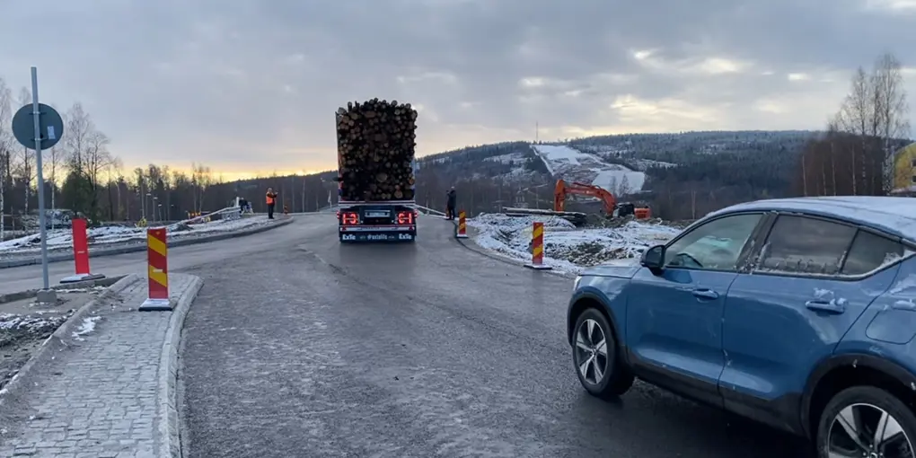 Fredag 1/11 öppnade nya bron över E4 vid trafikplats Timrå. Först över, en timmerbil på väg till Östrands massafabrik. Transporter som sedan 2019 gått via centrala Timrå. Bron bidrar till ökad trafiksäkerhet och miljö.