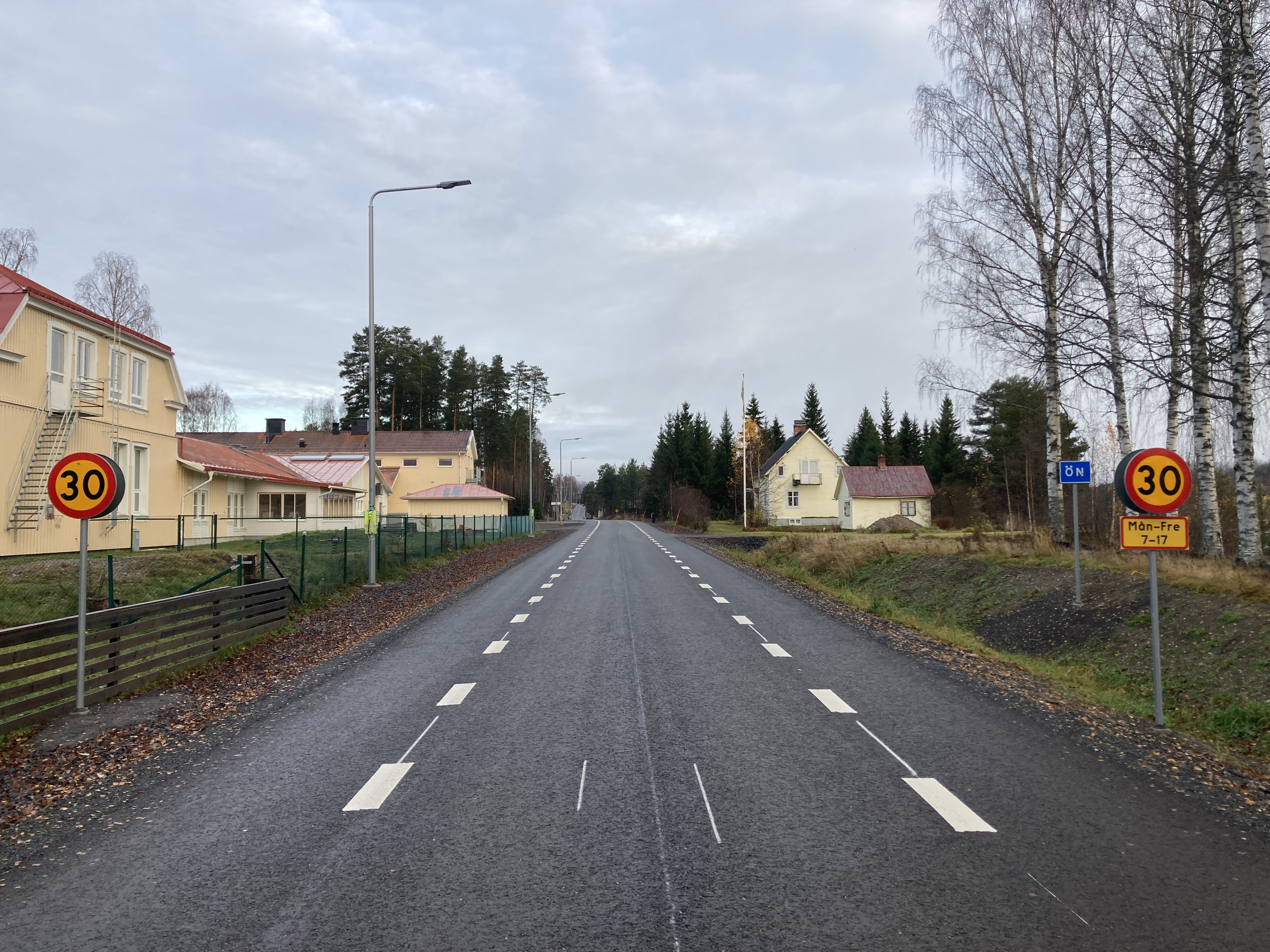 Den upprustade vägen mellan Östgranvåg och Forsmo har fått ett rejält lyft. Men det fanns brister i tillgängligheten och trafiksäkerheten för oskyddade trafikanter som går och cyklar längs vägen. För att få en tydligare och bättre trafikmiljö och förbättrad framkomlighet för dig som går och cyklar har vi målat vägen som en bygdeväg genom samhället Ön och Forsmo.
