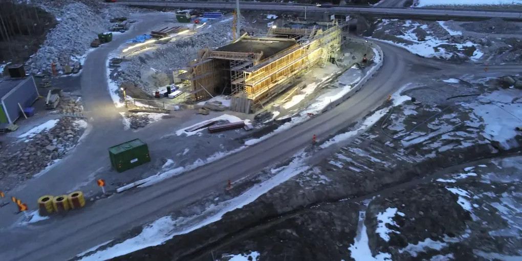 Broarna på väg 609 byggs på sidan om motorvägen för att sedan skjutas in i rätt läge i början av maj. För att kunna gjuta den södra bron behöver vi stänga av väg 609 mellan klockan 05:00 och 21:00 den 14 februari.
