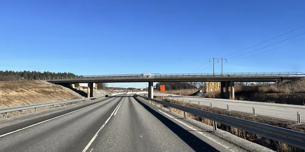 I samband med ombyggnationen av E18 till motorväg reparerar vi bron över E18 vid trafikplats Sörstafors. Halva bron fick bland annat nya kantbalkar under 2023 och nu fortsätter reparationsarbetena med andra halvan.