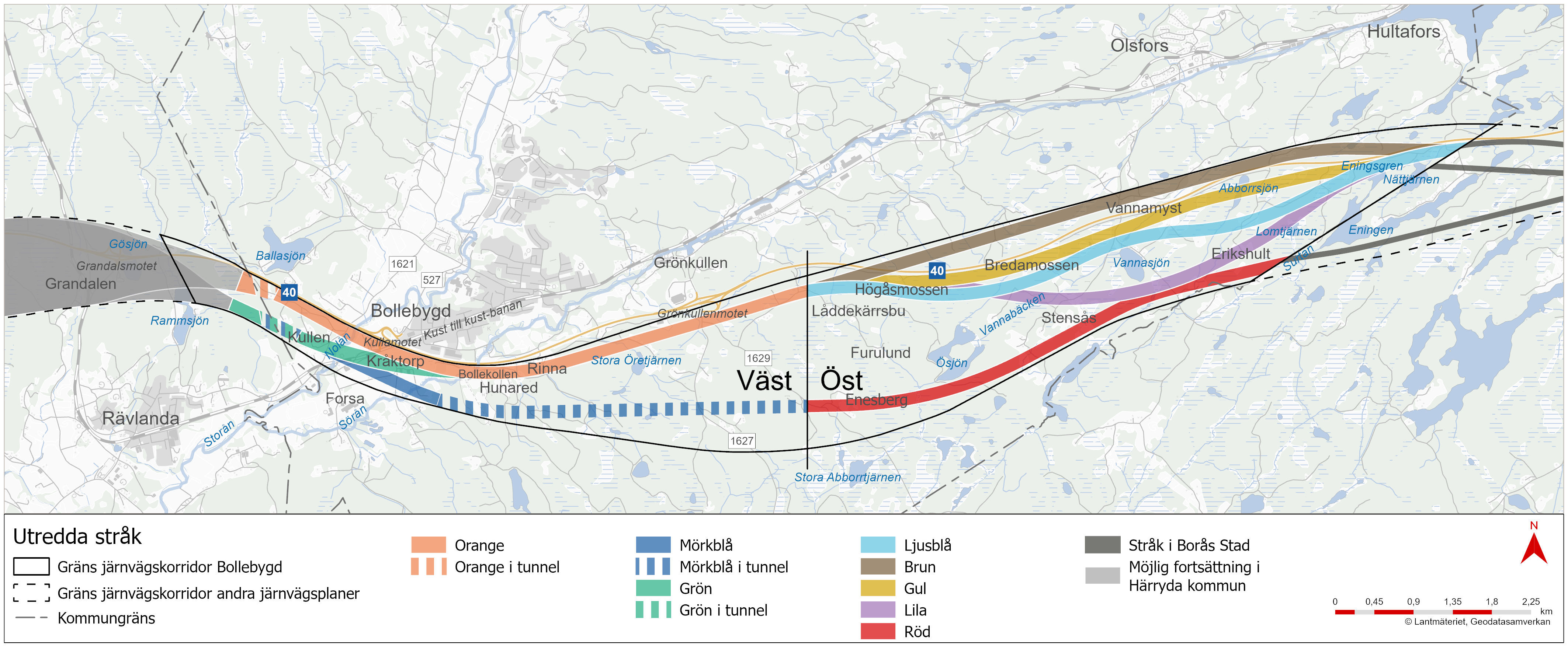 - Förslag till stråk för var den nya järnvägen kan placeras