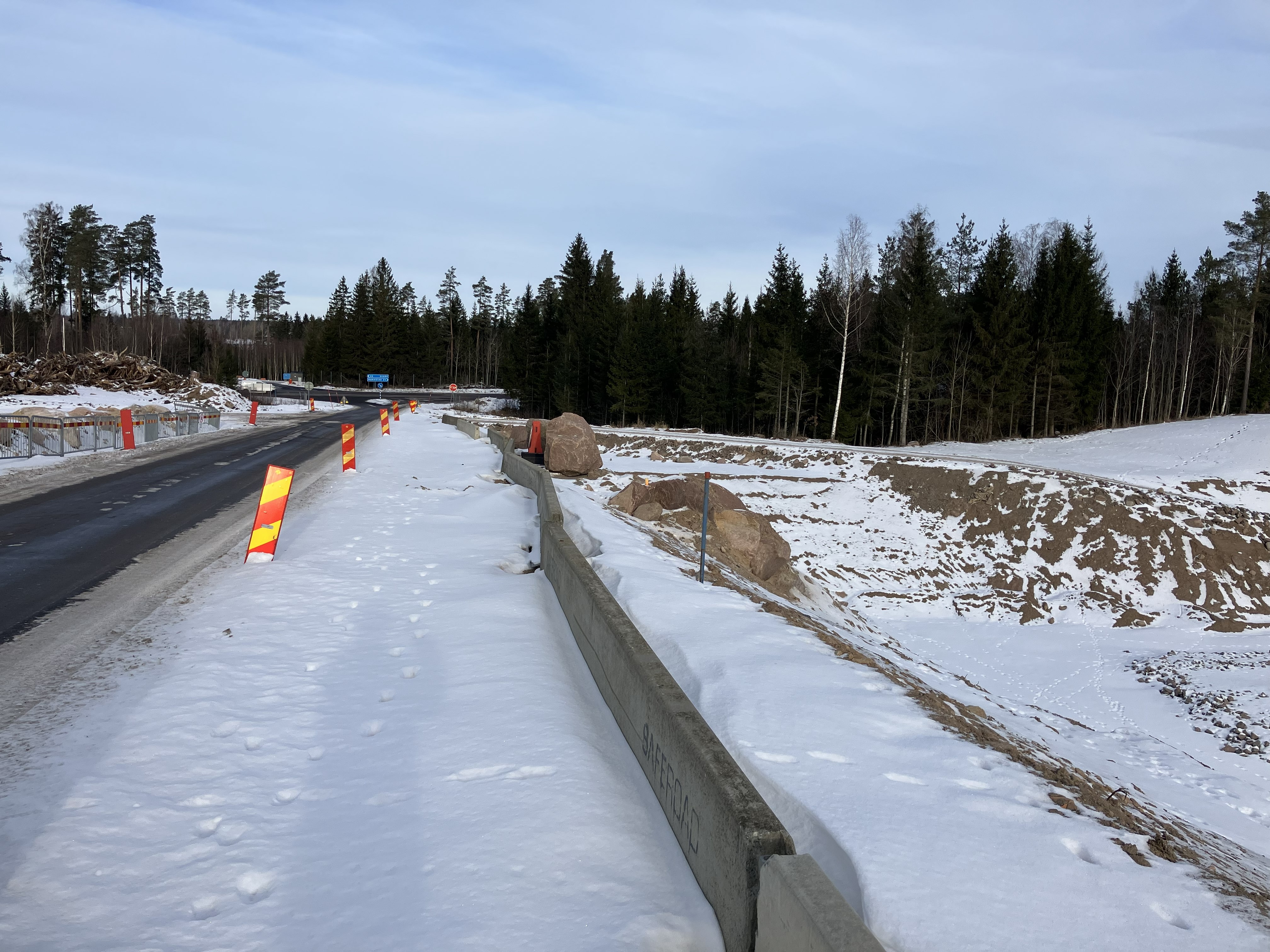 Vi har färdigställt två broar för att leda om trafiken under pågående arbeten. Vi gör det för att få en så säker arbetsplats så möjligt och minimera trafikstörningar. Trafiken leds upp på de nybyggda broarna för att få fritt utrymme att bygga E20 i ny sträckning under broarna, säger projektledare Marita Karlsson