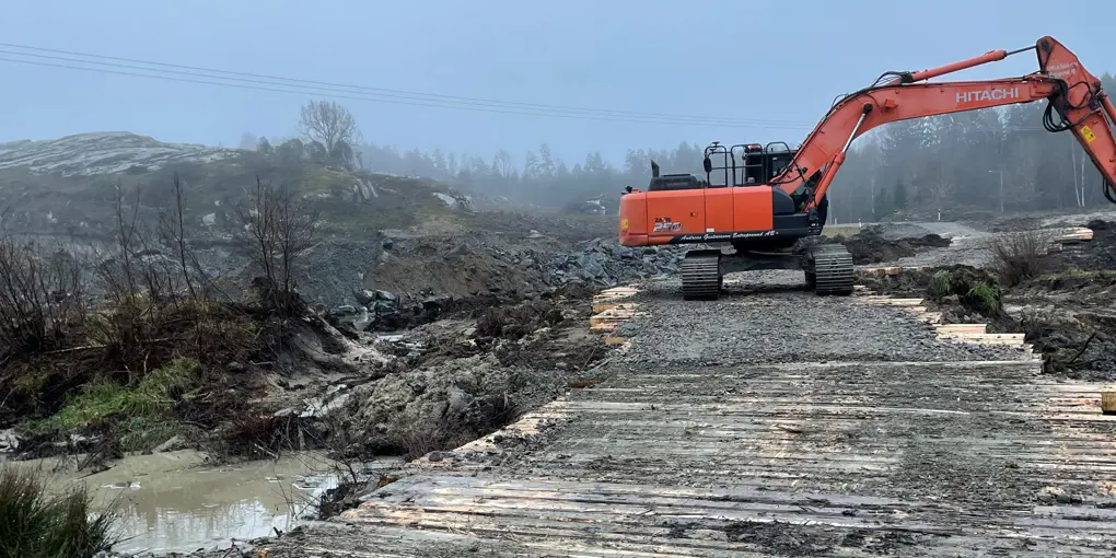 Så här veckan före jul fortsätter vi att bygga arbetsvägar som ska ge oss möjlighet att köra arbetsfordon i skredområdet. Samtidigt pågår arbete i centrum av skredet där vi kontinuerligt tar geotekniska prover.