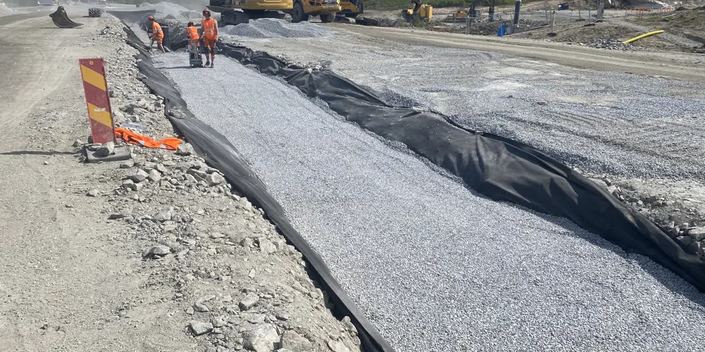 Arbetet framskrider som det ska i vägområdet där vi bygger upp E6 igen. Det sista gruslagret är lagt och vi förbereder för att kunna lägga asfalt.