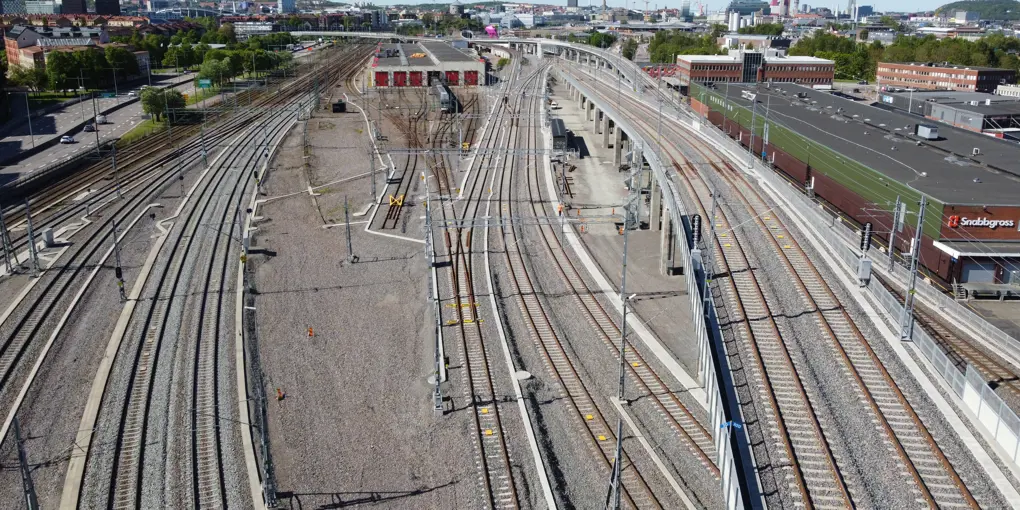 Efter flera års planering och byggnation är den nya planskildheten nu klar. Genom att bygga om spåren så att de korsar varandra i olika nivåer separeras gods- och persontrafiken, vilket förbättrar punktligheten och ökar kapaciteten i hela järnvägssystemet kring Göteborg.