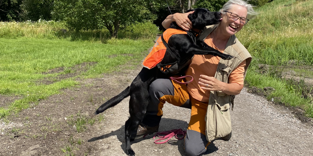 Fladdermuskolonier, det vill säga bon, där honor i stora grupper föder och tar hand om sina ungar är dock inte lika lätta att upptäcka med autoboxar. Och det är här Katrin Wegener Lundkvists treåriga svarta jaktlabrador Vilda kommer in i bilden. Med vetskapen om att det vankas favoritmat – mjukost! – vid en lyckad markering nosar Vilda sig igenom de tio hektaren skog i Gamle dal på några timmar i jakt på fladdermusdoft.