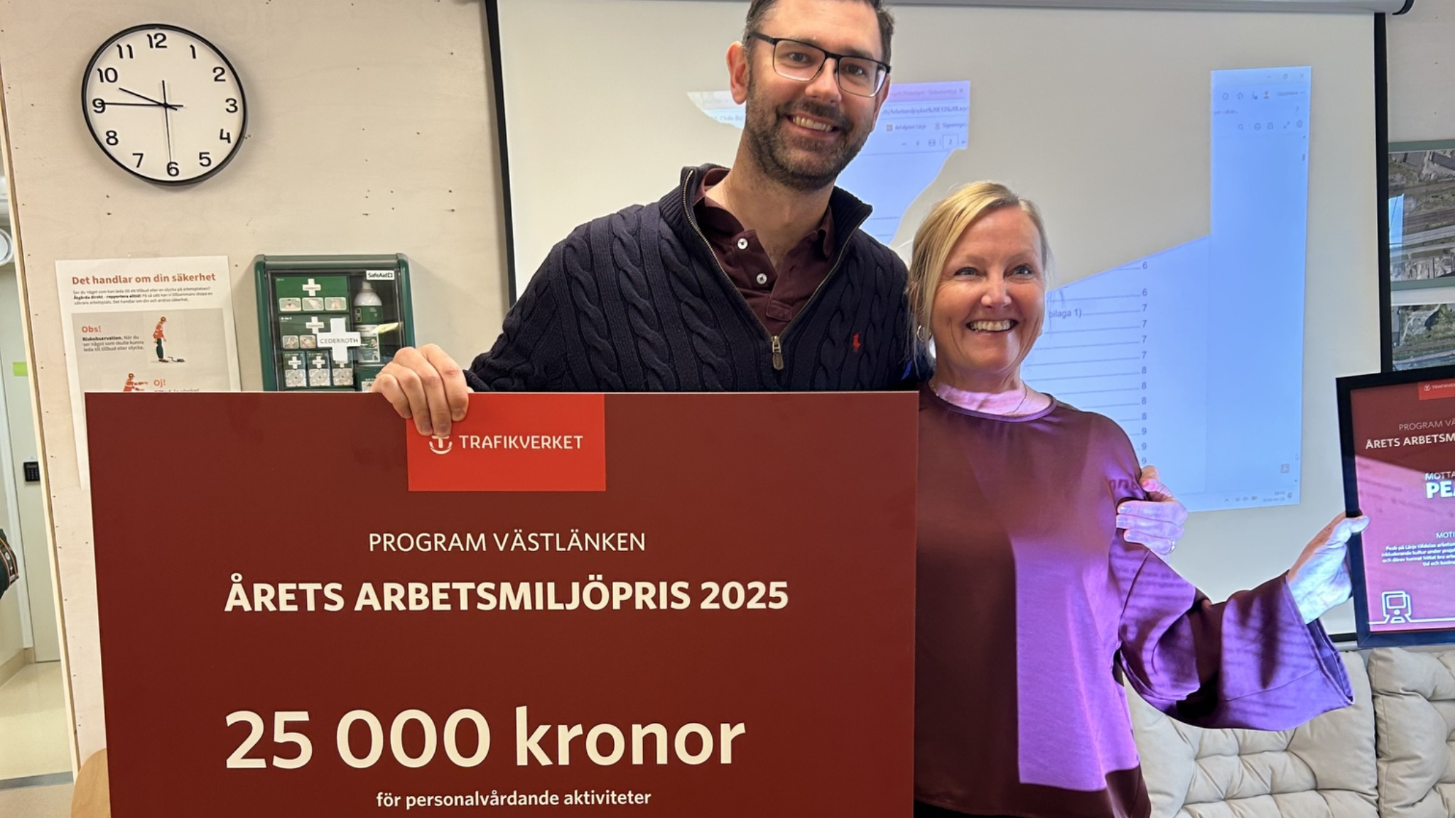 Priset delades ut av Trafikverket och består av ett diplom samt 25 000 kronor som ska användas till personalfrämjande insatser. I motiveringen lyfts projektets strukturerade arbetsmiljöarbete, med gemensamma säkerhetsdagar, arbetsmiljöenkäter och riktade informationsinsatser. Den nära samverkan mellan beställare, entreprenör och fackliga organisationer har varit avgörande.
