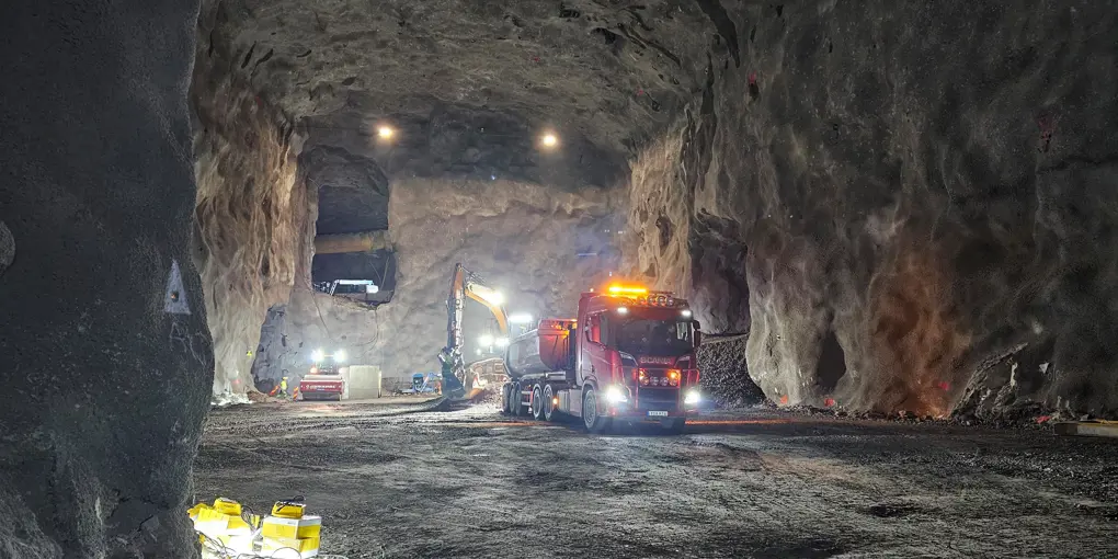 Vi har sprängt ut utrymmet för fläktstationen i olika steg under en längre tid men nu är den helt klar. Arbetena med gjutning har påbörjats. Vi håller på att gjuta bottenplattan och balkar för det framtida betonghuset som ska inhysa fläktarna och annan inredning. I det sista steget installeras själva fläktarna och all teknik runt omkring dem.